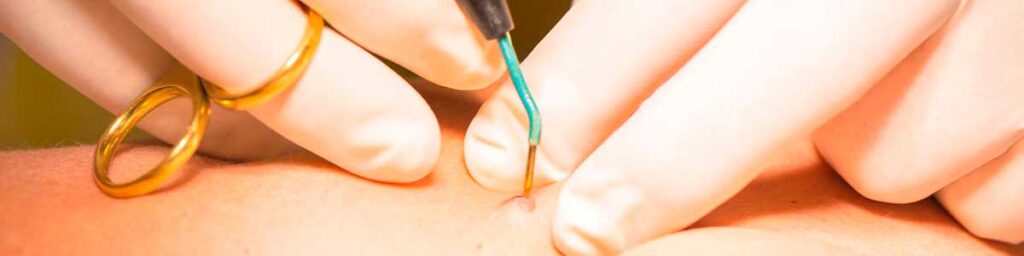 Este procedimento faz uso de uma sonda que possui corrente elétrica, com a finalidade de destruir as camadas do tecido que possua a verruga. Vale ressaltar que existe a chance de deixar uma pequena cicatriz.
